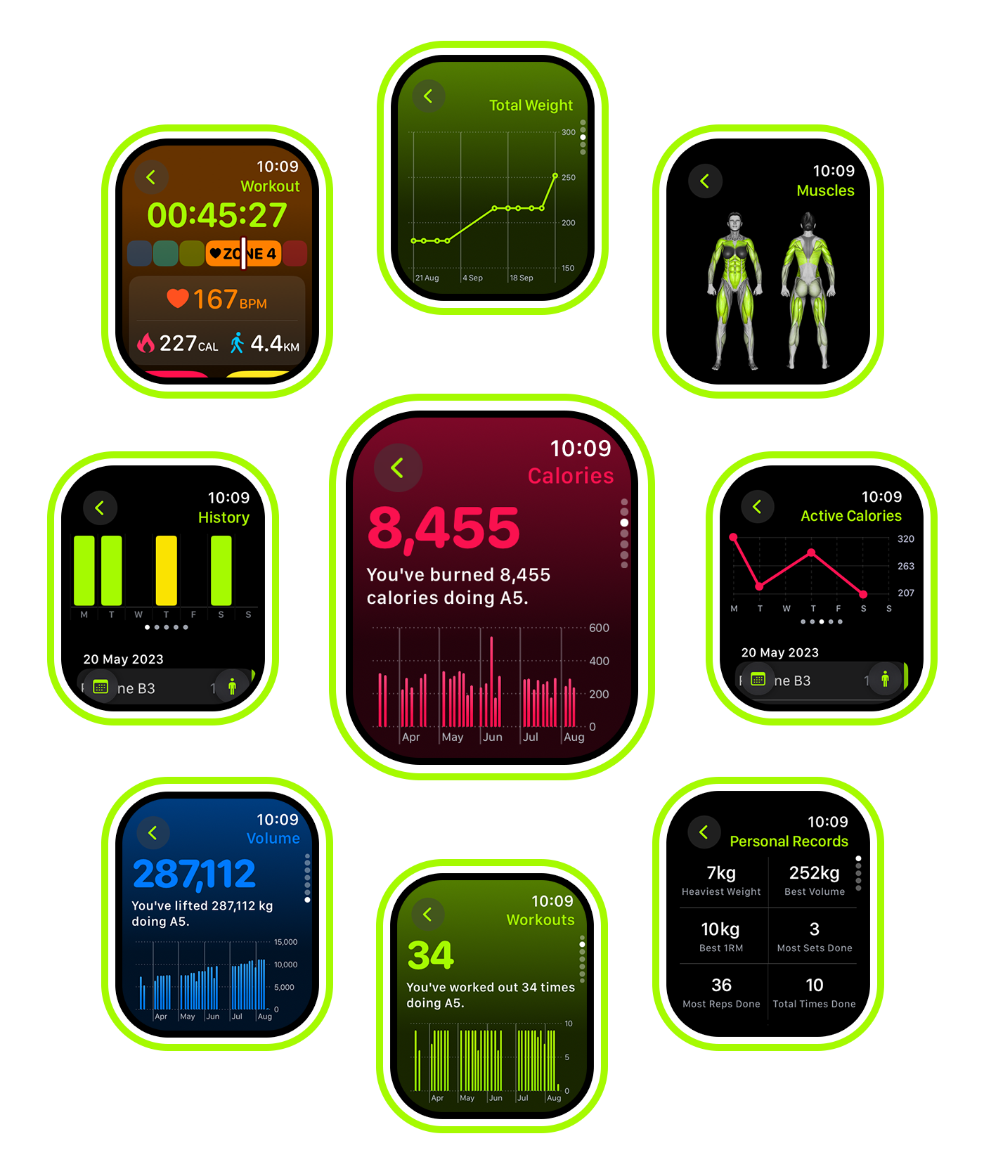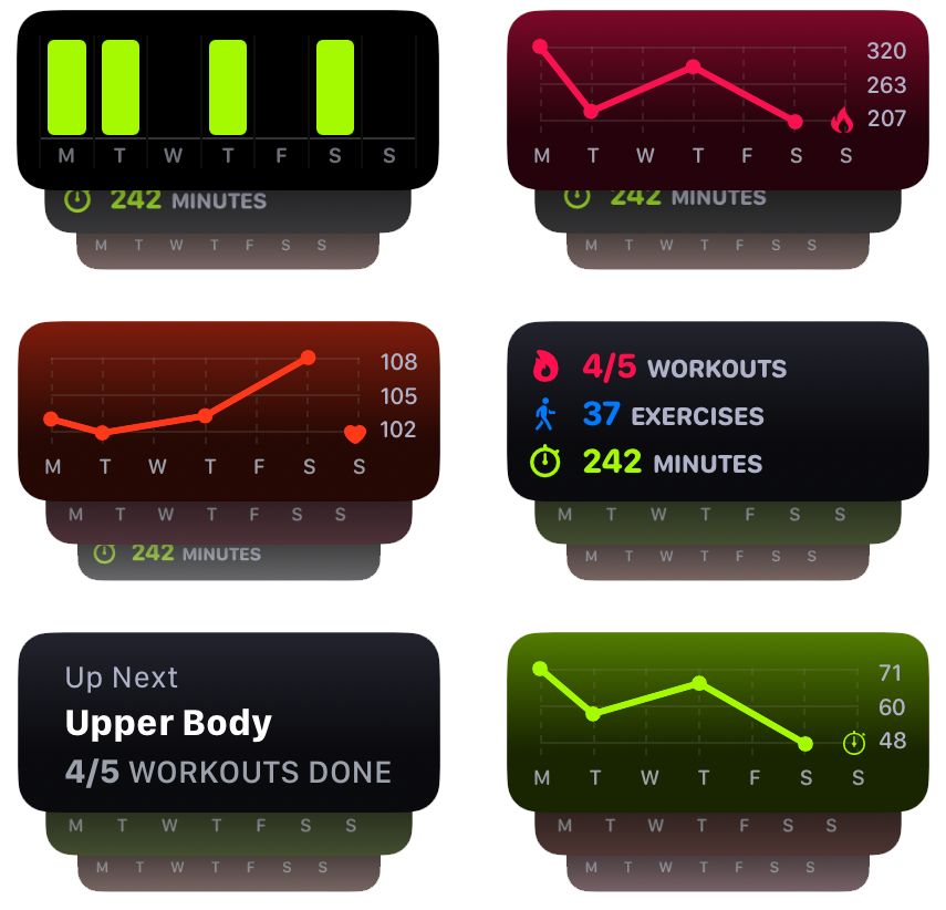 Easily add shortcuts to open the app with a single tap, access your workout charts, view your weekly workout summary, or even integrate our Siri Shortcuts, all from the Watch Face.