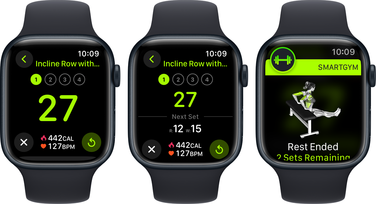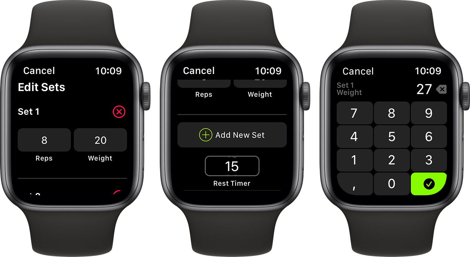 Need to change something? That’s fine. It's super easy to change the number of reps, weight, add an extra set, or even change your rest. All that from the Watch. And with just a few taps.